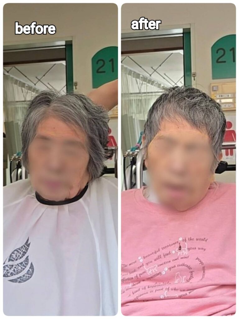 現在はご自宅や施設、病院などにお伺いし、カットを中心とした施術を行っております。